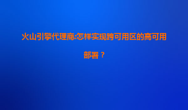 2025-07-09火山引擎代理商实现跨可用区高可用部署方案 一、为什么需要跨可用区高可用部署 在数字化转型加速的今天,业务连续性已成为企业运营的核心需求。跨可用区部署能够有效避免单点故障风险,当某个可用区遇到电力中...
