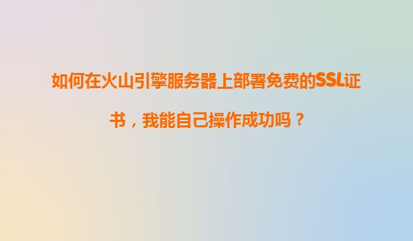 2025-11-03如何在火山引擎服务器上部署免费SSL证书:详细操作指南 前言 在当今互联网环境中,SSL证书已成为网站安全的标配。无论是保护用户数据、提升SEO排名,还是增强用户信任,HTTPS协议都至关重...