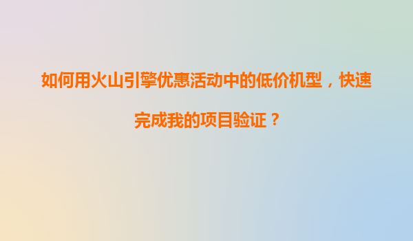 2025-11-03如何利用火山引擎优惠活动中的低价机型快速完成项目验证 一、项目验证的常见痛点 在项目开发初期,尤其是创业团队或个人开发者,通常会面临以下挑战: ...