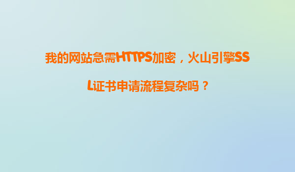 2025-11-03我的网站急需HTTPS加密,火山引擎SSL证书申请流程复杂吗? 随着网络安全意识的提升,HTTPS加密已成为网站运营的基本要求。对于急需为网站部署HTTPS的用户来说,选择一个高效、便捷的SSL证书服务至关重要。...