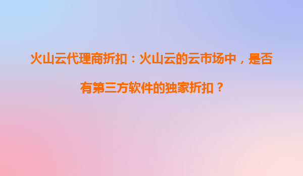 2025-11-01火山云代理商折扣:火山云云市场中的第三方软件独家折扣解析 在当今快速发展的云计算领域,企业越来越依赖云服务提供商来满足其IT基础设施的需求。火山云作为国内领先的云服务提供商之一,不仅提供稳定、高...