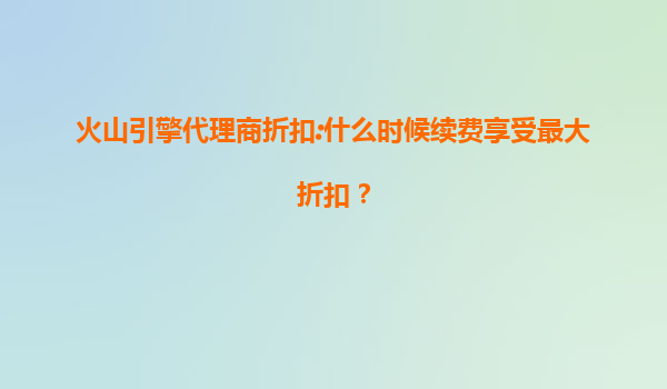 2025-07-08火山引擎代理商续费最大折扣时机及火山云优势解析 何时续费可享最高代理折扣? 通过火山引擎官方认证的渠道代理商续费服务时,用户通常在以下三个时间节点可获得最大折扣优惠:首先是在每年第三季度末(9月)火山云...