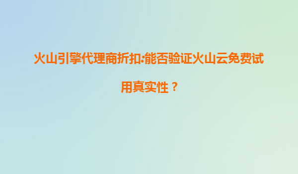 2025-07-08火山引擎代理商折扣:能否验证火山云免费试用真实性? 引言:火山云的竞争优势 火山云作为字节跳动旗下的云计算服务品牌,凭借强大的技术支撑和资源优势,近年来在云计算市场中崭露头角。其核心优...
