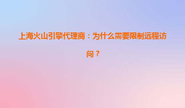 2025-07-08上海火山引擎代理商:为什么需要限制远程访问? 一、远程访问的双刃剑属性 在数字化转型浪潮下,远程访问已成为企业常态。火山引擎作为字节跳动旗下的云服务平台,其代理服务体系尤其需要重...