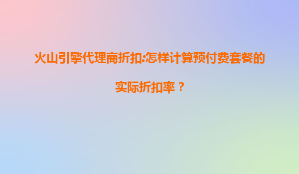 2025-07-08火山引擎代理商折扣:预付费套餐的实际折扣率计算与火山云优势解析 一、预付费套餐折扣率的计算方法 计算火山引擎代理商提供的预付费套餐实际折扣率,需结合以下关键因素: 基础定价模型:火...