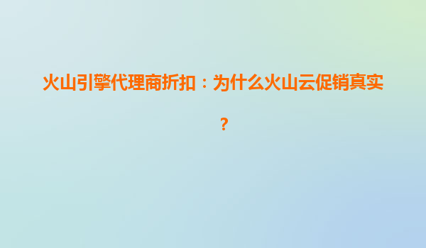 2025-07-07火山引擎代理商折扣:为什么火山云促销真实? 一、火山引擎代理商折扣的优势解析 火山引擎作为字节跳动旗下的云计算品牌,通过代理商模式为企业客户提供高性价比的折扣服务。代理商折扣的核心在于规模效应—...