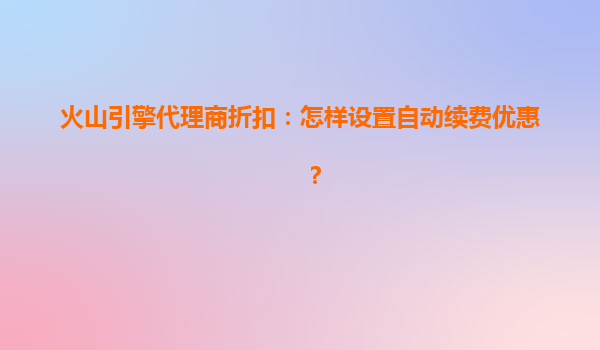 2025-07-07火山引擎代理商折扣:怎样设置自动续费优惠? 一、火山引擎代理商折扣概述 火山引擎作为字节跳动旗下的云计算服务平台,凭借强大的技术支持和丰富的产品矩阵,为企业客户提供高性能、高可靠的云服务解...