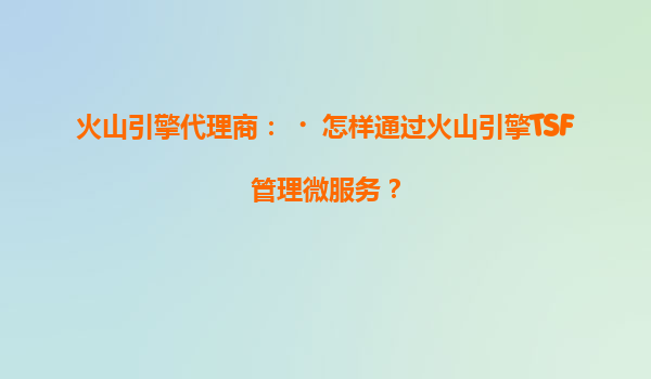 2025-07-07火山引擎代理商:如何通过火山引擎TSF高效管理微服务 在数字化转型的浪潮中,微服务架构因其灵活性、可扩展性和敏捷性成为企业技术升级的首选。然而,微服务的复杂性也带来了管理上的挑战。作为火山引擎代理商...