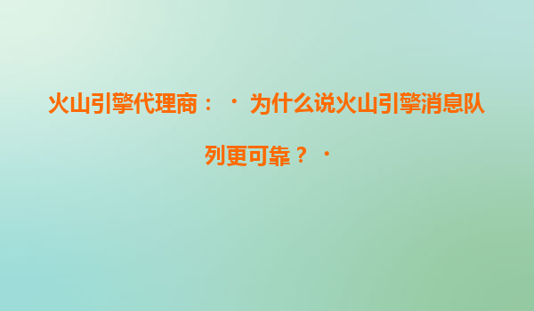 2025-07-07火山引擎代理商:为什么说火山引擎消息队列更可靠? 一、火山引擎消息队列的核心优势 火山引擎作为字节跳动旗下的企业级技术服务平台,其消息队列产品(如Kafka和RocketMQ企业版)在可靠性设计上具备以下核心优...