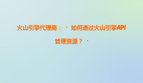火山引擎代理商:如何通过火山引擎API管理资源? 引言 在当今数字化时代,企业对于云计算资源的需求日益增长,如何高效、便捷地管理这些资源成为企业关注的重点...