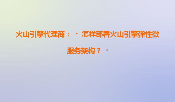 2025-07-05火山引擎代理商:如何高效部署弹性微服务架构 一、火山引擎弹性微服务架构概述 随着企业数字化转型加速,微服务架构因其灵活性、可扩展性成为云原生应用的主流...