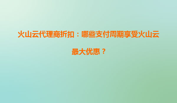 2025-07-05火山云代理商折扣:哪些支付周期享受火山云最大优惠? 一、火山云的核心优势 火山云作为字节跳动旗下的云计算服务品牌,凭借技术实力和生态资源,为企业提供高性价比的云服务解决方案。...