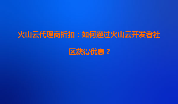 2025-07-05火山云代理商折扣:如何通过火山云开发者社区获得优惠? 一、火山云的核心优势 火山云作为字节跳动旗下的云计算服务品牌,凭借以下优势成为企业数字化转型的优选: 全球...