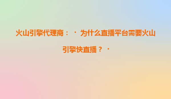 2025-07-05火山引擎代理商:为什么直播平台需要火山引擎快直播? 引言:直播行业的挑战与需求 随着移动互联网的普及和5G技术的快速发展,直播行业迎来了爆发式增长。无论是电商直播、游戏直播、教...