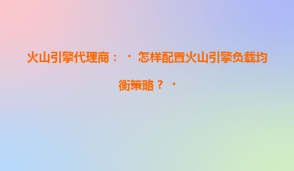 2025-07-05火山引擎代理商:怎样配置火山引擎负载均衡策略? 一、火山引擎负载均衡的核心优势 火山引擎作为字节跳动旗下的云服务平台,其负载均衡服务(CLB)凭借以下优势成为企业上云的关键组件: 高性...