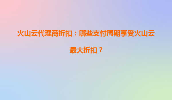 2025-07-05火山云代理商折扣政策解析:如何享受最大优惠 火山云代理商的核心优势 火山云作为领先的云计算服务提供商,凭借其高性能计算资源、全球覆盖的数据中心网络以及灵活的付费模式,已成为企业数字化转型的重要...