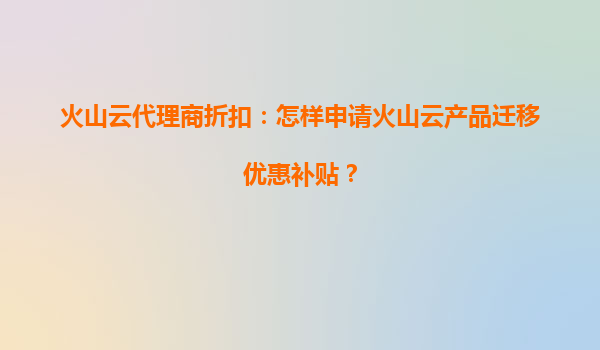 火山云代理商折扣:申请产品迁移优惠补贴指南 火山云的核心优势 火山云作为领先的云计算服务提供商,凭借高性能计算资源、弹性扩展能力和全球覆盖的数据中心网络,为用户提供稳定高效的云服务解决方案。其...