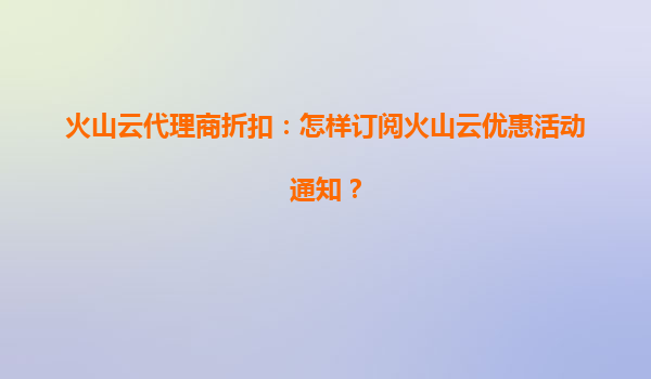 2025-07-04火山云代理商折扣:如何订阅火山云优惠活动通知? 一、火山云的核心优势 在数字化转型浪潮中,火山云作为领先的云计算服务商,凭借以下优势成为企业上云的首选: 高性能...