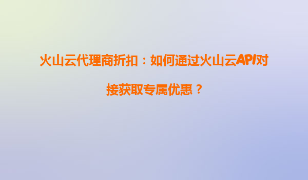 2025-07-04火山云代理商折扣:如何通过火山云API对接获取专属优惠? 一、火山云的核心优势 火山云作为字节跳动旗下的云计算服务品牌,凭借其强大的技术底蕴和资源整合能力,为企业用户提供了高性能、高可靠的云服务解...