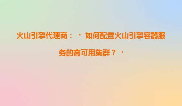 火山引擎代理商:如何配置火山引擎容器服务的高可用集群 随着企业数字化转型的加速,容器技术因其轻量、高效和可移植的特性,成为构建现代化应用架构的重要选择。火山引擎作为字节跳动旗下的云服务平台,提供了...