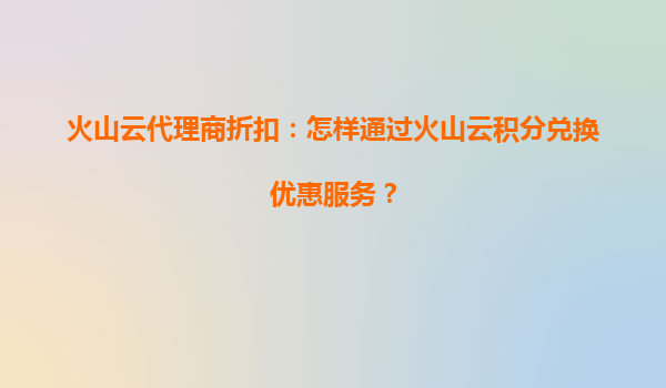 2025-07-04火山云代理商折扣:如何通过火山云积分兑换优惠服务? 一、火山云的竞争优势 火山云作为领先的云计算服务提供商,凭借高效稳定的基础设施、弹性可扩展的资源配置以及全球化的节点覆盖,为用户提供了强...
