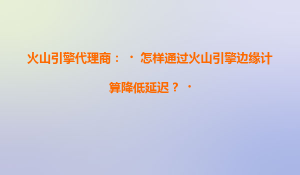 2025-07-04火山引擎代理商:如何通过火山引擎边缘计算降低延迟? 在当今数字化时代,低延迟已成为许多应用场景的核心需求,尤其是在线游戏、实时视频会议、物联网(IoT)和金融交易等领域。延迟的高低直接影响用户体验和...