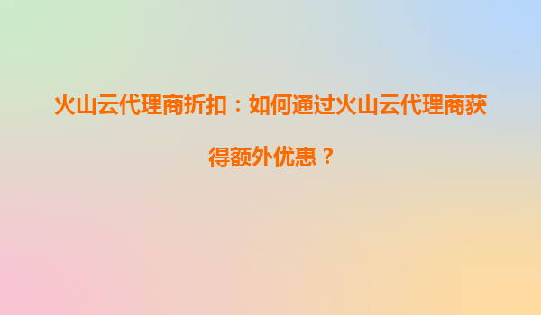 2025-07-02火山云代理商折扣:如何通过火山云代理商获得额外优惠? 在当今数字化转型的浪潮下,云计算服务已成为企业发展的关键基础设施。火山云作为字节跳动旗下的云计算品牌,凭借其强大的技术实力和丰富的行业经验,为...