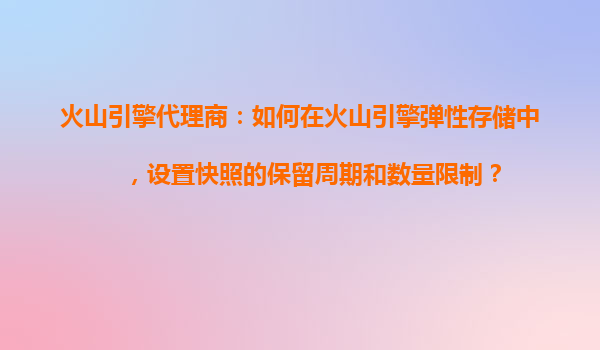 2025-10-31火山引擎代理商:如何在火山引擎弹性存储中,设置快照的保留周期和数量限制? 火山引擎弹性存储的核心优势 火山引擎作为字节跳动旗下的云服务平台,其弹性存储服务凭借高性能、高可靠性...