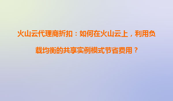 2025-10-31火山云代理商折扣:如何在火山云上,利用负载均衡的共享实例模式节省费用? 一、火山云的优势概述 火山云(VolcanoEngine)是字节跳动旗下的一站式云计算服务平台,凭借其强大的基础设...