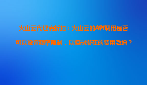 2025-10-30火山云代理商折扣:如何通过频率限制优化API调用成本? 一、火山云API调用的费用与频率限制需求 随着企业数字化进程加速,云计算服务的API调用已成为业务运行的核心环节...