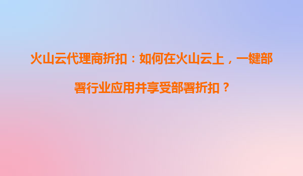2025-10-30火山云代理商折扣:如何在火山云上,一键部署行业应用并享受部署折扣? 一、火山云的核心优势 火山云作为字节跳动旗下的云计算服务平台,具备高性能、高可靠性和全球化的基础设施布局。其主要优势包括...
