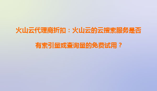 2025-10-30火山云代理商折扣:火山云的云搜索服务是否有索引量或查询量的免费试用? 火山云代理商折扣政策解析 火山云作为国内领先的云计算服务商,提供全面的云搜索解决方案。针对代理商,火山云...
