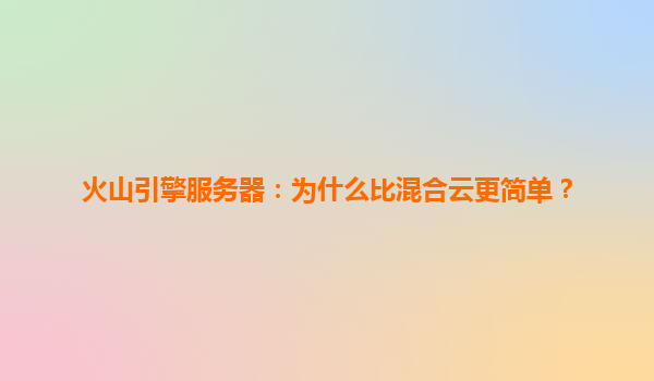 2025-04-19火山引擎服务器:为什么比混合云更简单? 一体化架构设计,简化部署流程 火山引擎服务器通过深度优化的基础设施架构,提供从计算、存储到网络的全栈服务能力。相较于混合云需要协调多个平...