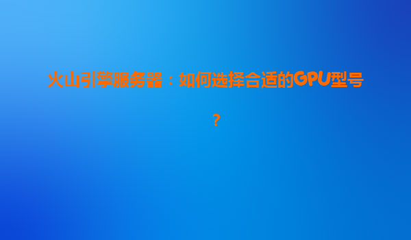 2025-04-19火山引擎服务器:如何选择合适的GPU型号? 一、火山引擎GPU服务器的核心优势 火山引擎作为字节跳动旗下的云服务平台,在GPU算力资源领域具备显著的技术与服务优势,可帮助用户高效匹配业务需求与硬件资...