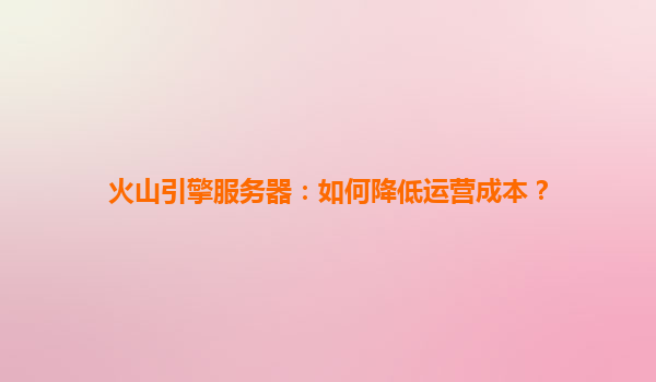 2025-04-14火山引擎服务器:如何通过技术与服务降低企业运营成本? 一、火山引擎的核心技术优势 火山引擎作为字节跳动旗下的云服务平台,通过技术创新为企业提供高性价比的解决方案: ...