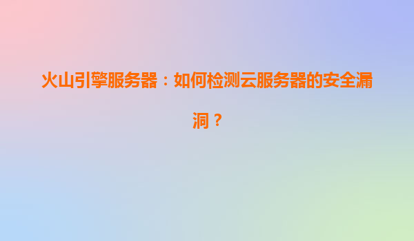 2025-04-11火山引擎服务器:如何检测云服务器的安全漏洞? 一、云服务器安全漏洞的挑战 随着企业上云进程加速,云服务器的安全性成为业务稳定运行的核心要素。安全漏洞可能源自系统配置不当、未及时...