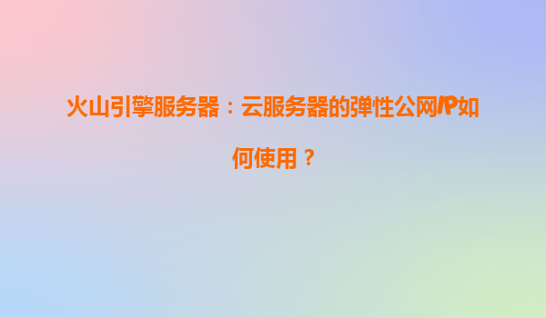 2025-04-10火山引擎弹性公网IP:灵活连接云上资源的利器 一、弹性公网IP的核心价值 在云计算场景中,弹性公网IP(ElasticIP)是连接云服务器与互联网的关键纽带。火山引擎通过创新的弹性公网IP服务,为企业提供...