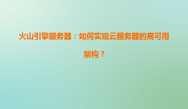 2025-04-08火山引擎服务器:如何实现云服务器的高可用架构? 一、高可用架构的核心目标与挑战 高可用性(HighAvailability,HA)是云服务设计的核心目标之一,旨在通过冗余设计、故障自动转移和负载均衡等技术,...