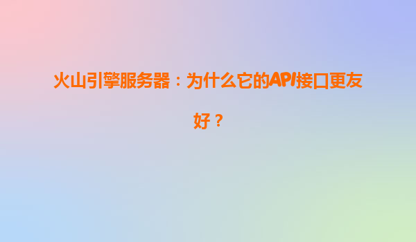 2025-04-05火山引擎服务器:为什么它的API接口更友好? 在云计算和数字化转型的浪潮中,API接口作为系统间通信的核心工具,其设计质量直接影响开发效率与业务扩展能力。火山引擎服务器凭借...