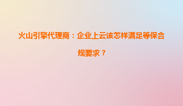 火山引擎代理商:企业上云如何满足等保合规要求? 一、等保合规的核心要求与挑战 等保(网络安全等级保护)2.0标准要求企业从物理环境、网络架构、数据安全、应用系统等多维度构建安全防护体系。企业上云需...