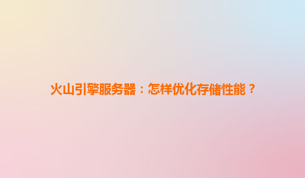 2025-04-04火山引擎服务器存储性能优化指南:技术与生态的双重赋能 一、火山引擎存储架构的核心优势 多类型存储服务协同:火山引擎提供块存储(EBS)、文件存储(NAS)、对象...