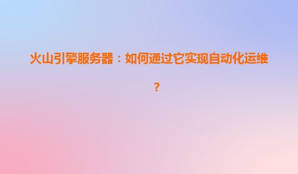 2025-04-04火山引擎服务器:如何通过它实现自动化运维? 一、自动化运维的价值与火山引擎的核心优势 自动化运维通过减少人工干预、提升效率、降低错误率,已成为企业数字化转型的关键环节。火山引擎依托字节...