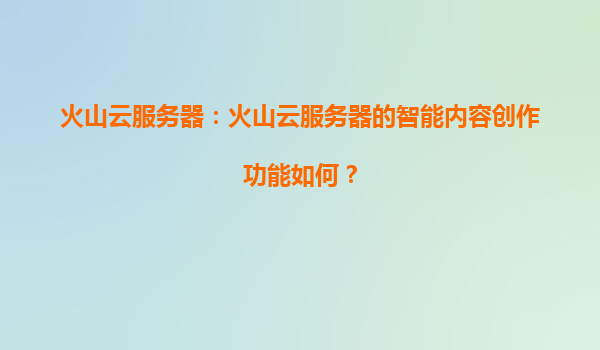 2025-04-02火山云服务器:智能内容创作的未来引擎 在数字化转型加速的今天,企业对于高效、智能的内容创作需求日益增长。火山云服务器作为火山引擎旗下的核心云服务产品,凭借其强大的智能...