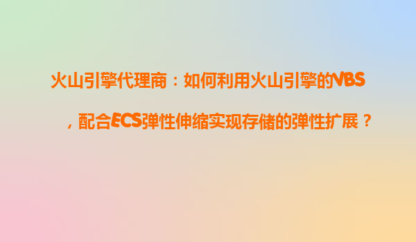 2025-10-29火山引擎代理商:如何利用火山引擎的VBS,配合ECS弹性伸缩实现存储的弹性扩展? 一、火山引擎的核心优势 火山引擎作为字节跳动旗下的云服务平台,提供高性能、高可靠性的基础设施服务,尤其在弹性伸缩和存...