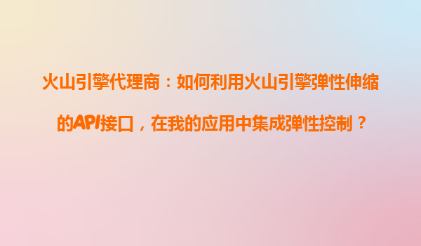 2025-10-29火山引擎代理商指南:如何通过API实现弹性伸缩集成 一、火山引擎弹性伸缩的核心价值 火山引擎(VolcanoEngine)作为字节跳动旗下的云服务平台,其弹性伸缩服务(AutoScaling)能够根据业务负载动态调整...