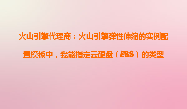 2025-10-29火山引擎代理商:弹性伸缩实例配置模板中的EBS类型与大小定制详解 一、火山引擎弹性伸缩的核心能力 火山引擎作为字节跳动旗下的云计算服务平台,其弹性伸缩(AutoScaling)服务可帮助企...