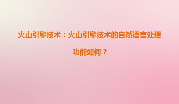 2025-04-02火山引擎自然语言处理技术的核心优势 火山引擎的自然语言处理(NLP)技术基于深度学习与大规模预训练模型,具备高精度语义理解能力。其核心技术架构支持多任务并行处理,可快速响应文本分类、情感分析、实体识别...
