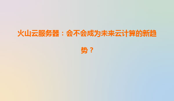 2025-03-29火山云服务器:云计算领域的新势力崛起 一、云计算市场的新变革契机 随着数字化转型加速,全球云计算市场规模持续扩大,企业需求正从基础资源供给转向智能化、场景化服务。火山引擎依托字节跳动十年技...