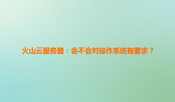 2025-03-29火山云服务器:对操作系统有要求吗? 一、火山云服务器的操作系统兼容性 火山云服务器(VolcanoEngineCloudServer)支持主流的操作系统,包括但不限于: Linux发行版:Ce...