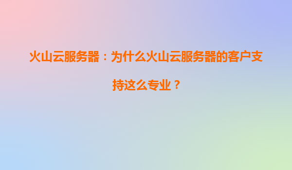2025-03-29火山云服务器:客户支持专业性的核心解析 一、火山引擎的技术优势为专业服务奠定基础 火山云服务器依托字节跳动多年积累的云计算与大数据技术,其底层架构支持弹性扩展、高可用性和智能运维。...